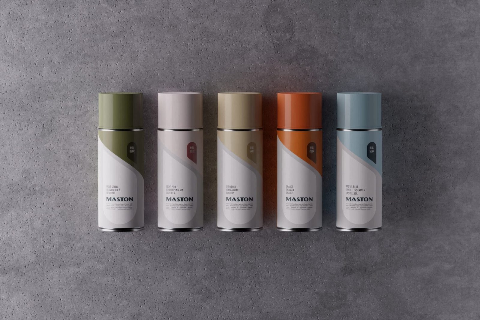 Maston Spray Paint, a leading manufacturer of spary paints, aimed to scale its presence in international markets and position itself as a premium brand. To support this ambition, I redesigned the packaging to communicate quality, sophistication, and ease of use. The new design introduced a modern visual language, featuring clean lines, a carefully curated color palette, and typography that elevated the overall aesthetic. This transformation not only enhanced shelf presence but also justified a price premium, aligning Maston with the expectations of global, design-conscious consumers. The result is a packaging system that balances functionality with refined elegance, setting Maston apart in a competitive market.