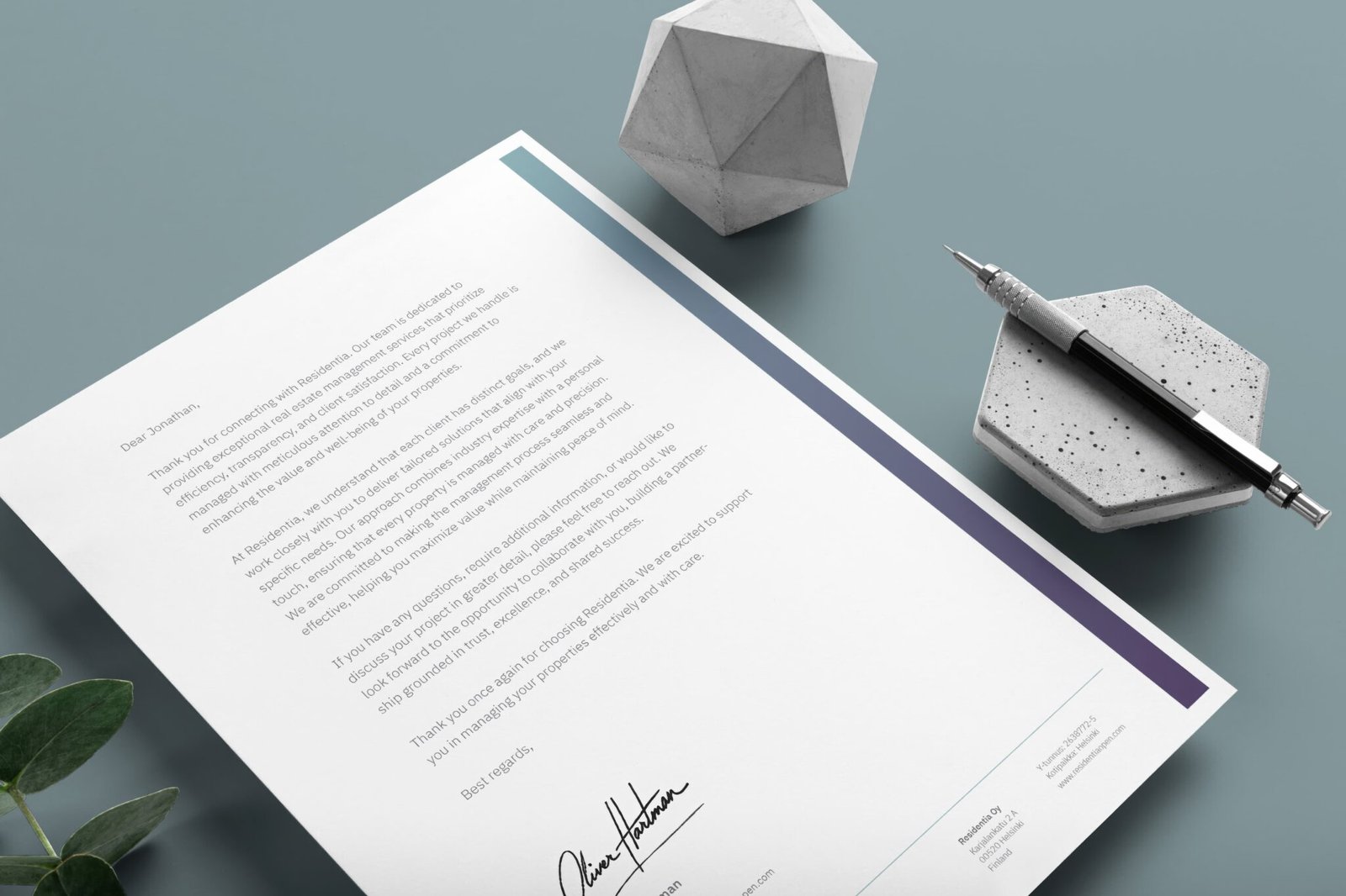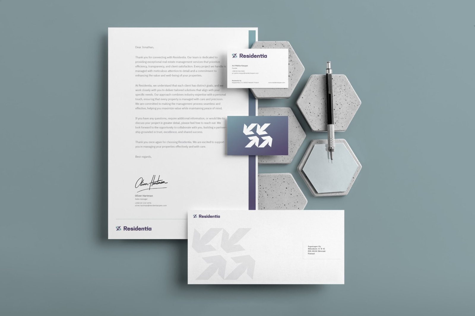 Residentia is a streamlined service platform tailored specifically for energy companies, aiming to enhance operational efficiency and client engagement. The branding reflects a modern, structured approach, blending professionalism with user-centric design. With a clean and geometric logo, a refined font palette, and subtle gradients, the identity emphasizes clarity, innovation, and adaptability—values essential to the energy sector. The branding is designed to instill trust and convey the platform’s capability to simplify energy management for businesses.